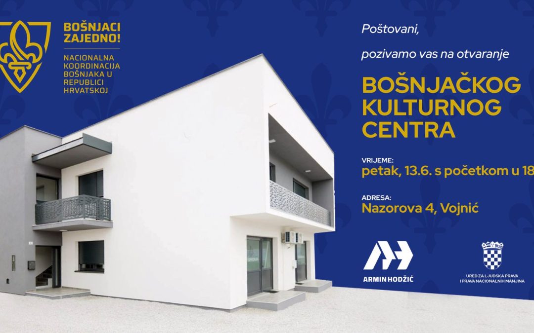 Čast nam je i zadovoljstvo pozvati Vas na svečano otvaranje Bošnjačkog kulturnog centra u Vojniću, koje će se održati u petak, 13. lipnja/juna 2025. godine s početkom u 18:00 sati, na adresi Nazorova 4, Vojnić.