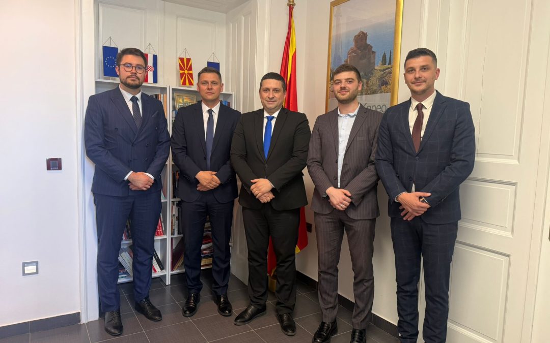 Zagreb, 24. travnja 2026. – Predsjednik Nacionalne koordinacije Bošnjaka u Republici Hrvatskoj, Bermin Meškić, sa delegacijom, boravio je u službenom posjetu veleposlanstvu Republike Sjeverne Makedonije u Republici Hrvatskoj, gdje se sastao sa Njegovom Ekscelencijom g. Draganom Gjurchevskim.